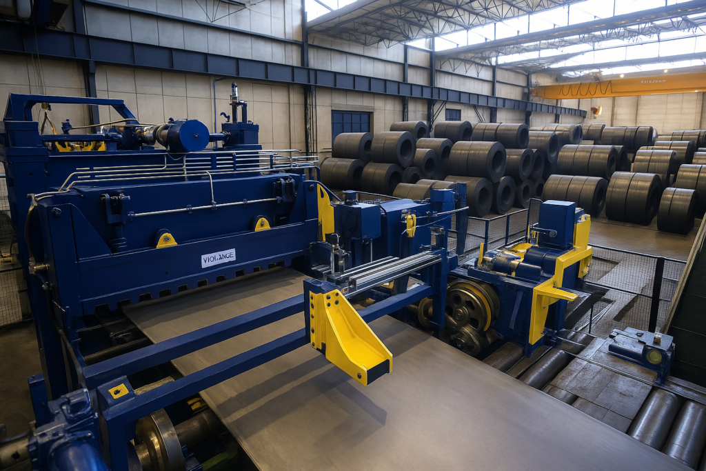 - Rognage en ligne pour tôles de coils jusqu’à 6 mm d’épaisseur et 2130 mm de largeur